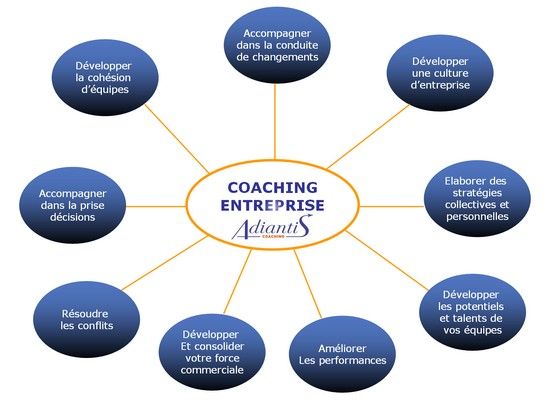 Le coaching d’entreprise, également appelé coaching professionnel, est un processus d’accompagnement personnalisé destiné à soutenir et à améliorer les performances professionnelles d’une équipe et/ou de chaque individu la constituant, au sein d’une organisation. Il vise à aider les employés, les cadres, les dirigeants ou les équipes à développer leurs compétences, à maximiser leur potentiel et à atteindre leurs objectifs professionnels.